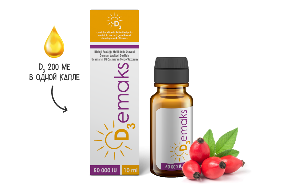Demaks капсулы являются источником жирорастворимого витамина D3, который помогает поддерживать нормальный рост и развитие костей у детей, способствует нормальному здоровью зубов и мышц, способствует нормальному усвоению кальция и фосфора, помогает поддерживать нормальный уровень кальция в крови  и способствует нормальному функционированию иммунной системы.